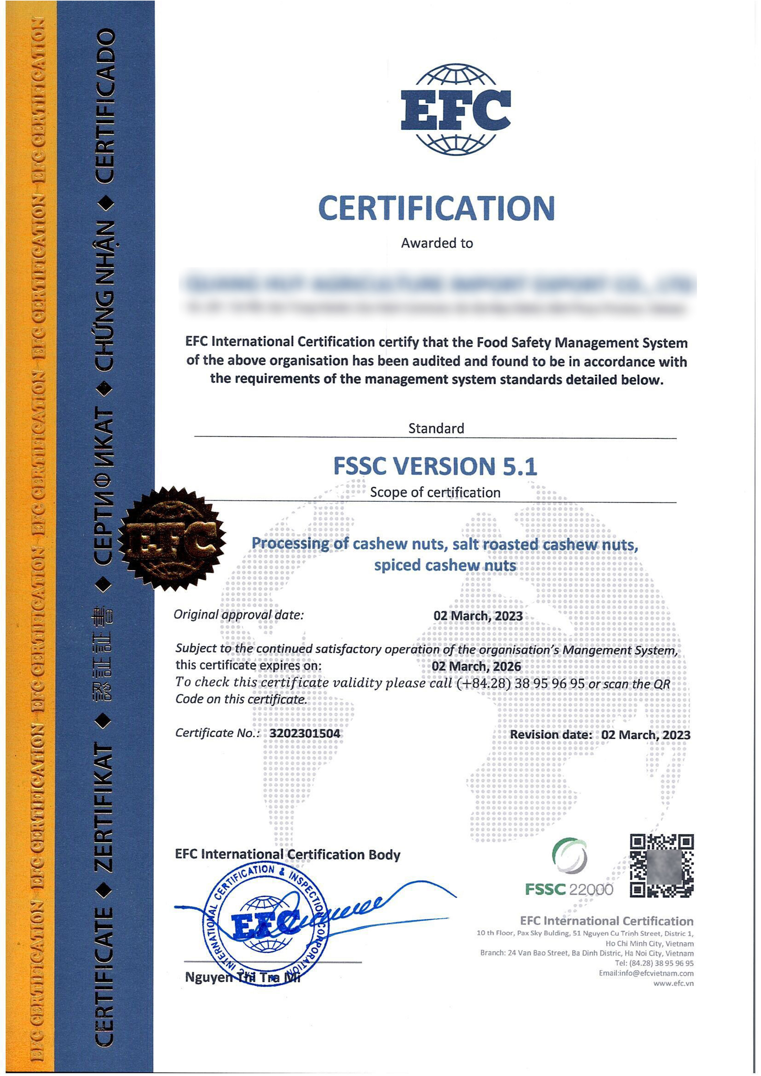 Chúng tôi không chỉ xây dựng một công ty thương mại và sản xuất – mà còn đang vun đắp niềm tin xuyên biên giới, sự kiên trì trong phát triển và những giải pháp được cá nhân hóa để phù hợp với nhu cầu riêng biệt của từng đối tác. Với các chứng nhận quốc tế như FDA, ISO22000, HACCP và GACC, chúng tôi tự hào duy trì các tiêu chuẩn cao nhất về an toàn thực phẩm và hiệu quả trong chuỗi cung ứng.