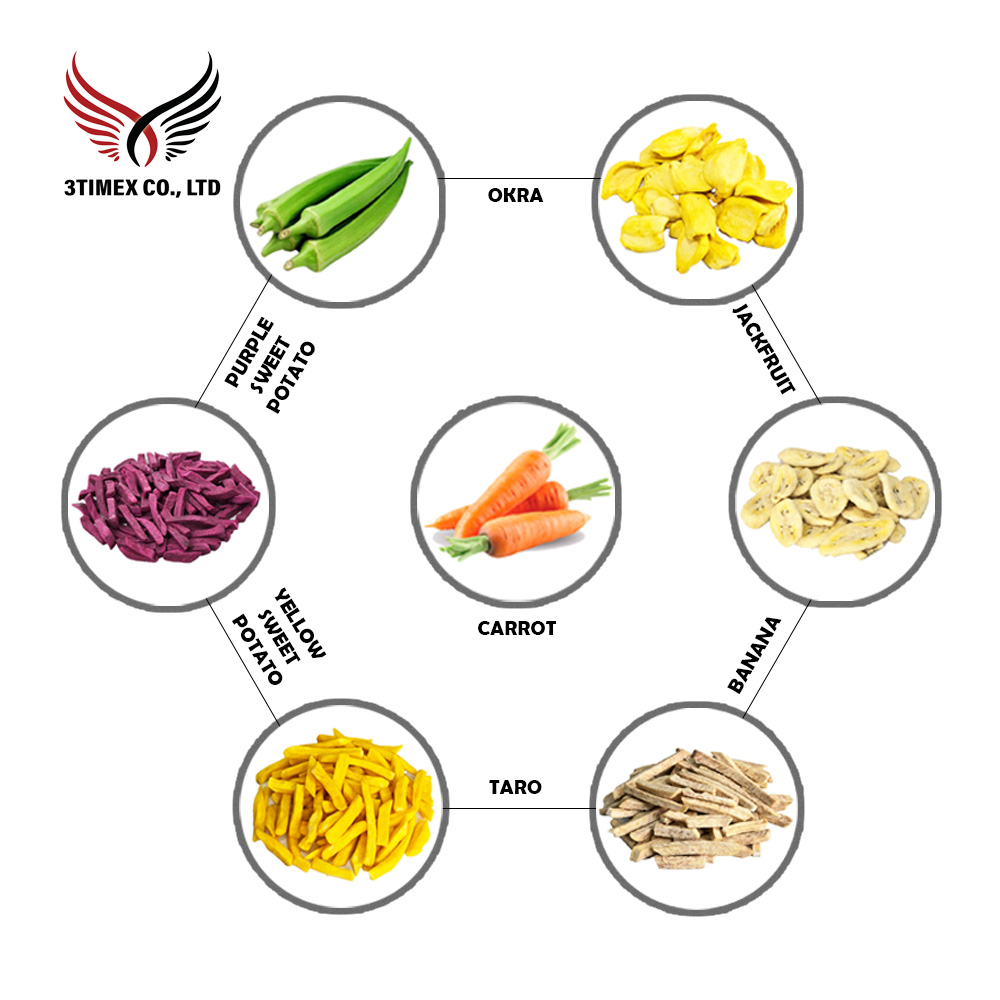 - Thành phần: mít, chuối, khoai lang, khoai môn, đậu bắp, carrot